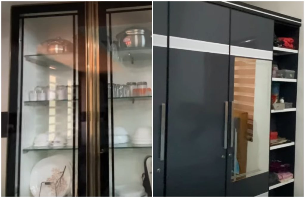 അവിടെ തന്നെയാണ് രണ്ട് ബെഡ്റൂമുകളും ഉള്ളത് വിശാലമായ റൂമുകളാണ്. മാസ്റ്റർ ബെഡ്റൂം ബാത്രൂം അറ്റാച്ഡ് ആണ്. രണ്ട് മുറികൾക്കിടയിൽ ഒരു കോമൺ ടോയ്ലറ്റ് കൂടി കൊടുത്തിട്ടുണ്ട്. സ്പെസും ആവശ്യത്തിന് സ്റ്റോറേജ് ഏരിയയും മുറികൾക്കുണ്ട്. അടുക്കളയിലേക്ക് എത്തിയാൽ വിശാലമായ ഒരു അടുക്കളയാണ്. അവിടെയും ഒരു ഡൈനിങ് ടേബിളും കസേരകളും സെറ്റ് ചെയ്തിട്ടുണ്ട്. വിശാലമായ സ്റ്റോറേജ് സ്പേസിന് പുറമെ ഒരു അലമാരയും കൂടെ സെറ്റ് ചെയ്തിട്ടുണ്ട്. ഗ്ലാസിന്റെയും വുഡിന്റെയും വാതിൽ ആണ് അടുക്കളക്ക് കൊടുത്തിരിക്കുന്നത്.